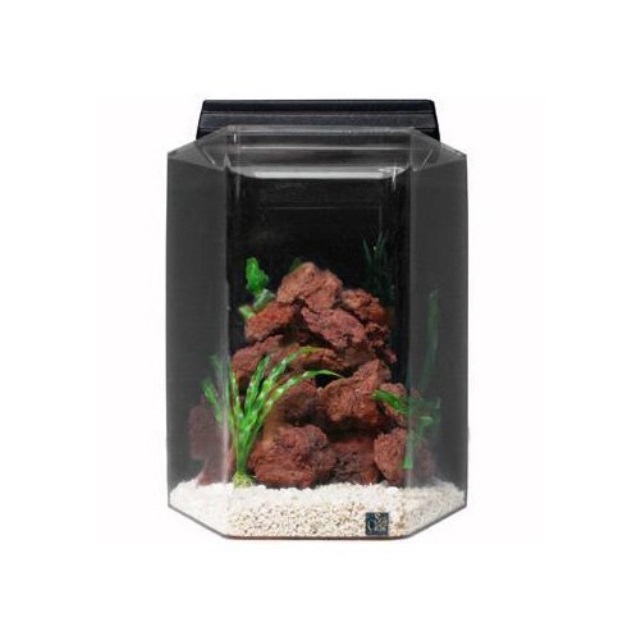 Seaclear 20 Gal Deluxe Hexagon Acrylic Aquarium Combo Set 15 By 15 By 24 Black